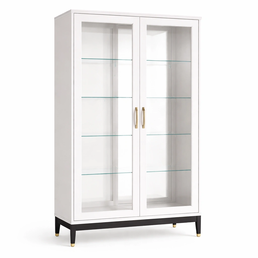 Vitrine Holz gehärtetes Glas Weiß Schwarz