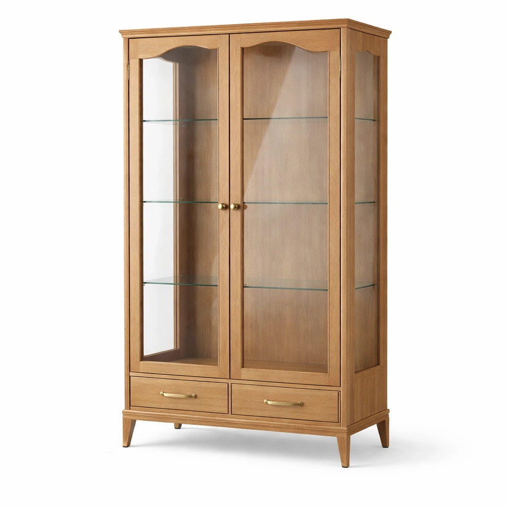 Vitrine Holz mit Klarglas Türen und 2 Schubladen