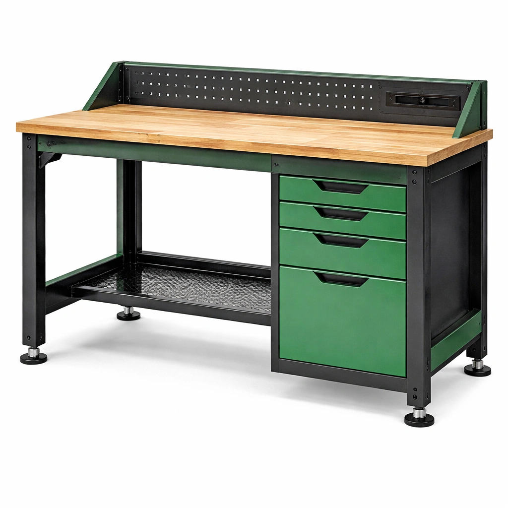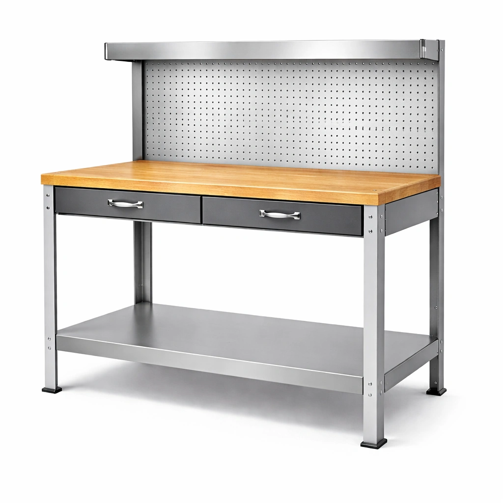 Werkbank Holz und Metall mit Schubladen und Lochwand