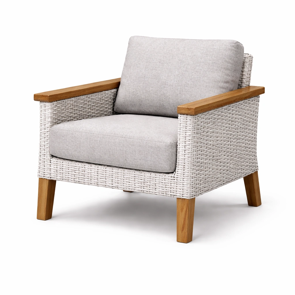 Struktur: Holzrahmen, Polyrattan-Geflecht, abnehmbarer Kissenbezug